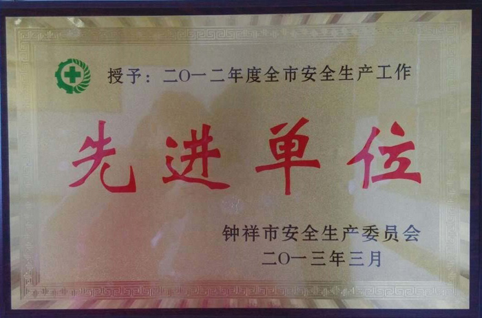 2013年3月授予2012年度全市安全生產(chǎn)工作先進(jìn)單位