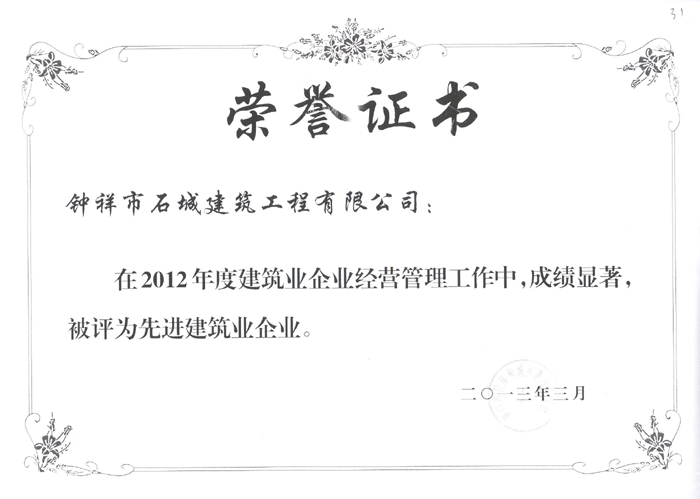 2013年3月被評為先進(jìn)建筑業(yè)企業(yè)