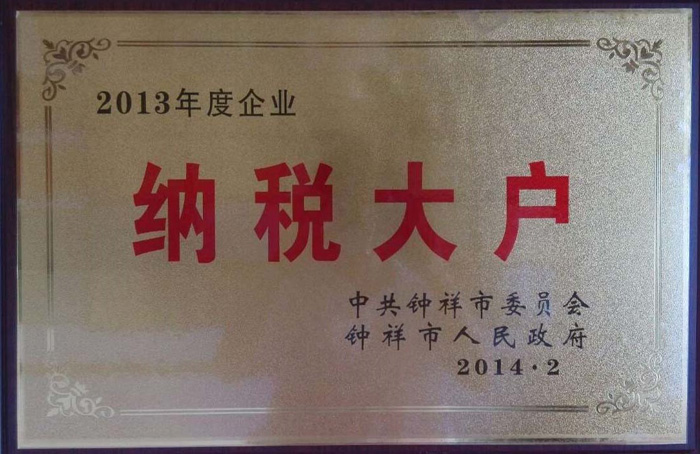 2014年2月榮獲2013年度企業(yè)納稅大戶